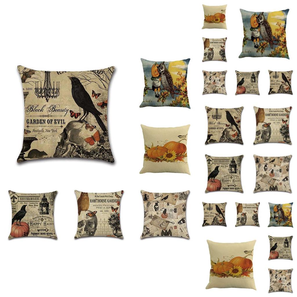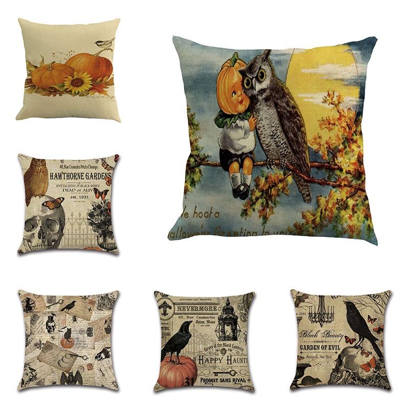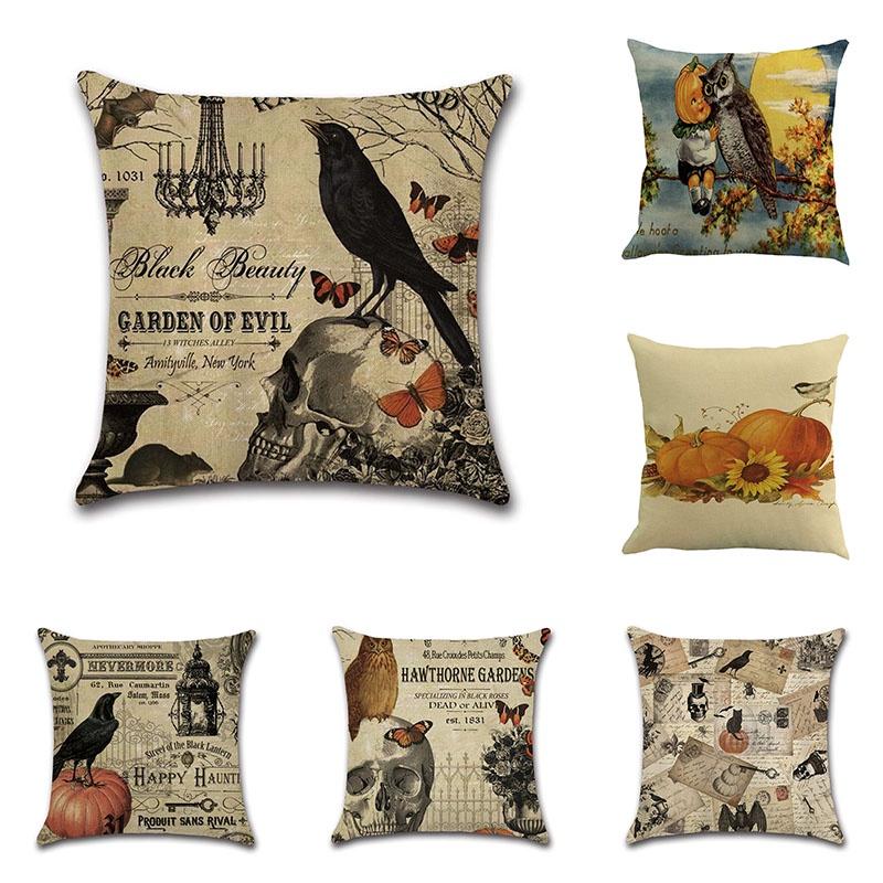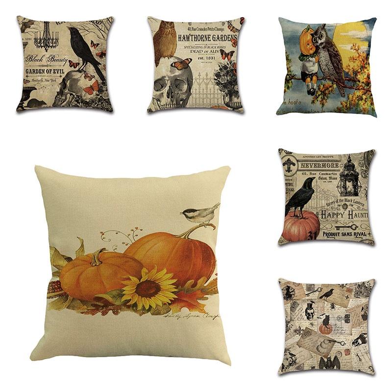 Stylish Cotton Linen Pillow Covers For Halloween Featuring Unique Pumpkin Designs