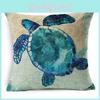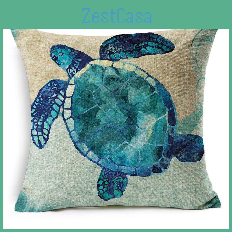 Exquisite 18" Blue Sea Animal Cotton Linen Cushion Cover For Stylish Living Spaces