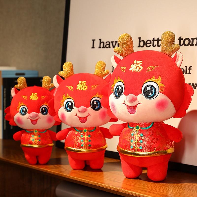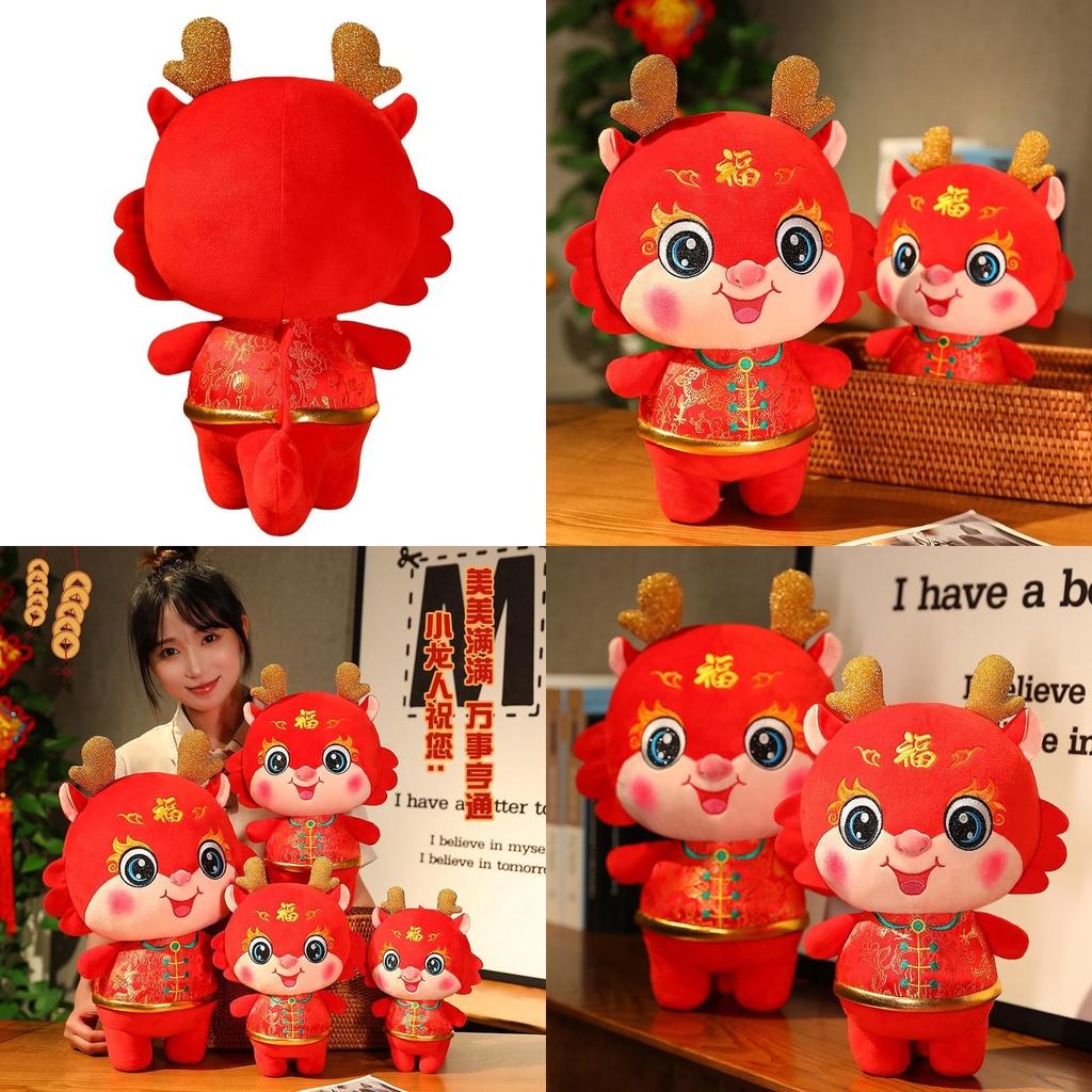 2024 Год Дракона Счастливый Талисман Плюшевая Кукла Красный 20см 26см 32см 38см 48см 60см