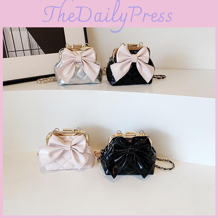 Modern Pu Leather Girls And Boys Shoulder Bag Featuring Adorable Bow And Checkered Pattern