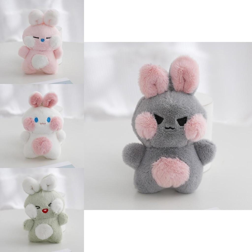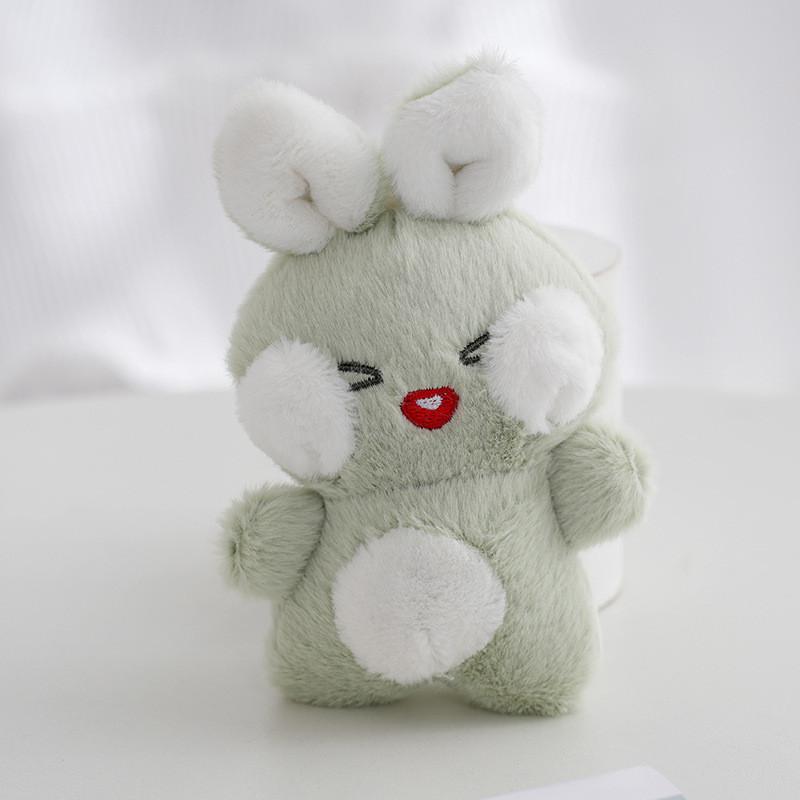 Очаровательный пушистый плюшевый брелок-кролик с румянцем в зеленом, белом, розовом и сером цветах