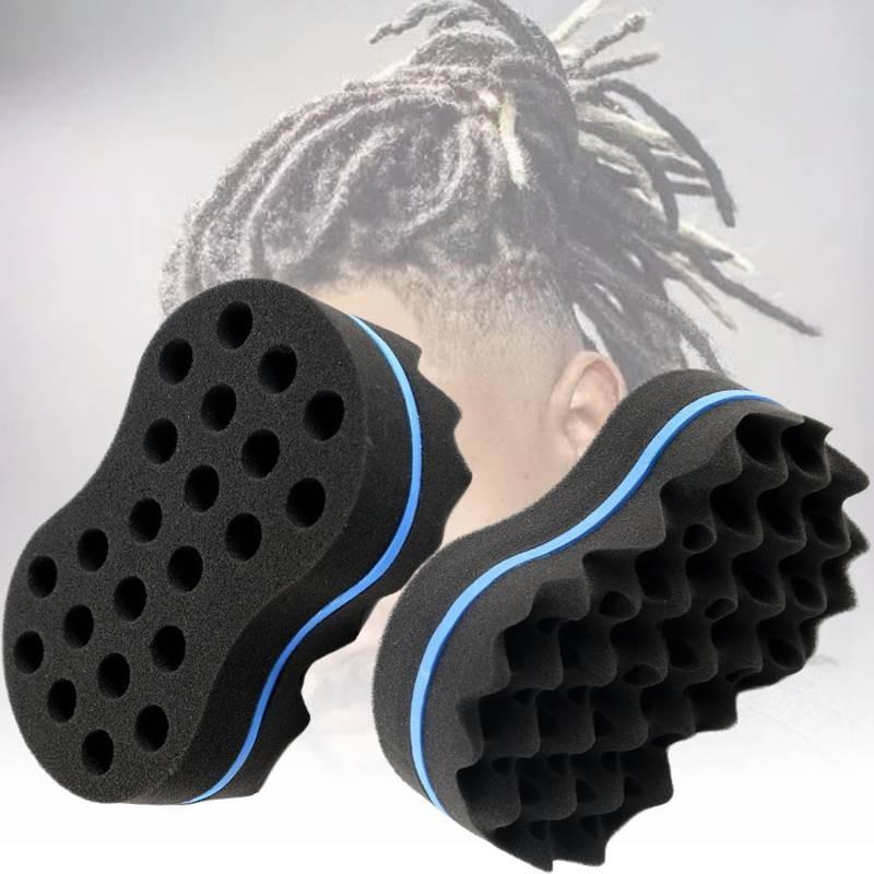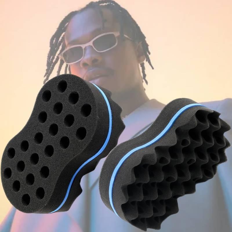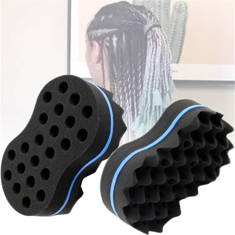 Большая двухсторонняя губка-щетка для создания легких красивых кудрей «голубая волна»