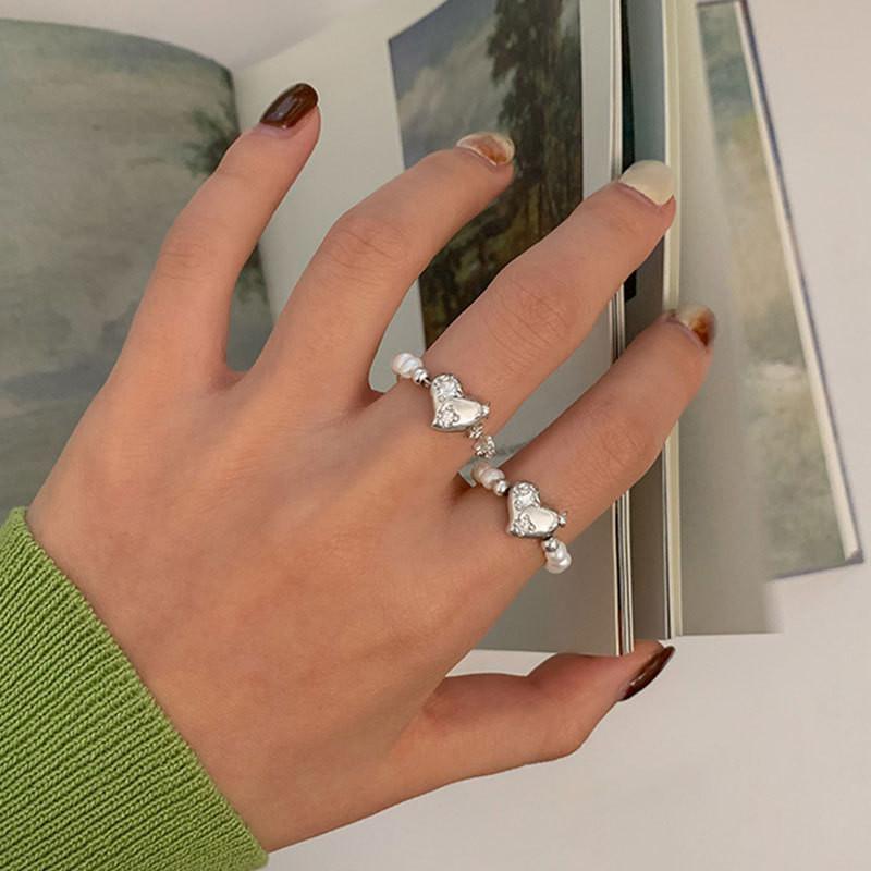 Stunning Design: The fashionable pearl and crystal heart design make this ring a perfect accessory for any occasion, adding a touch of elegance and charm.