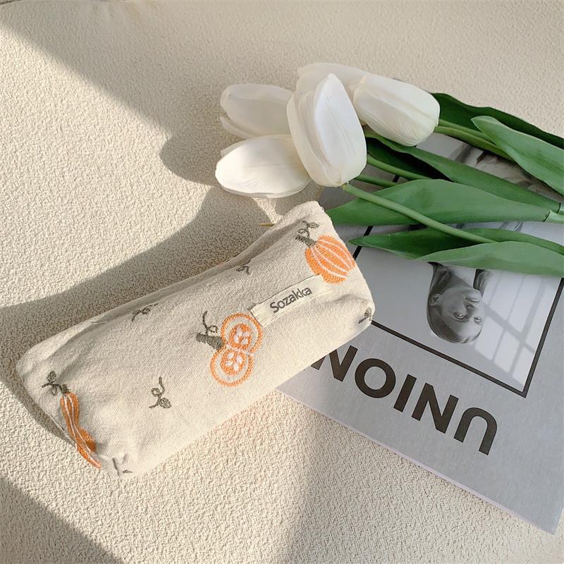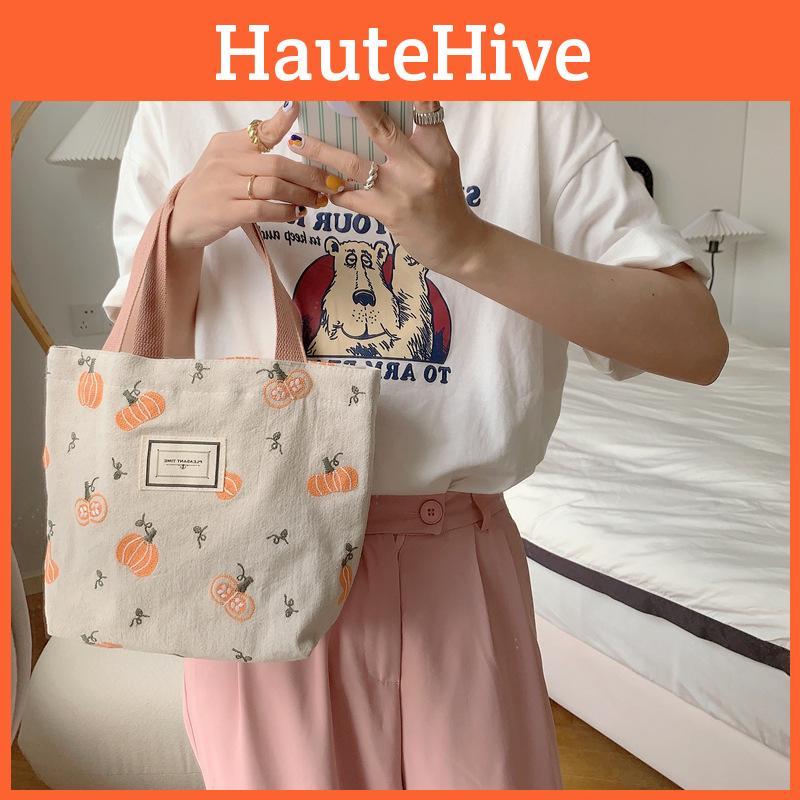 Модная холщовая сумка-тоут с вышивкой тыквы, большая вместимость, бежевая сумка