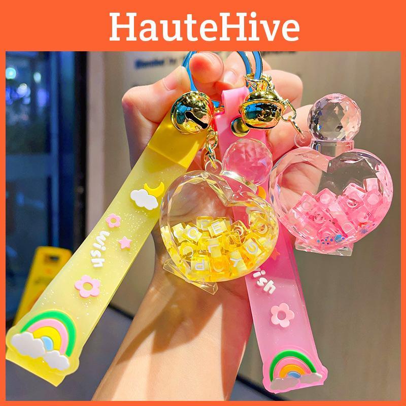 Изысканный акриловый брелок для ключей в виде флакона духов с плавающим песком для украшения автомобиля