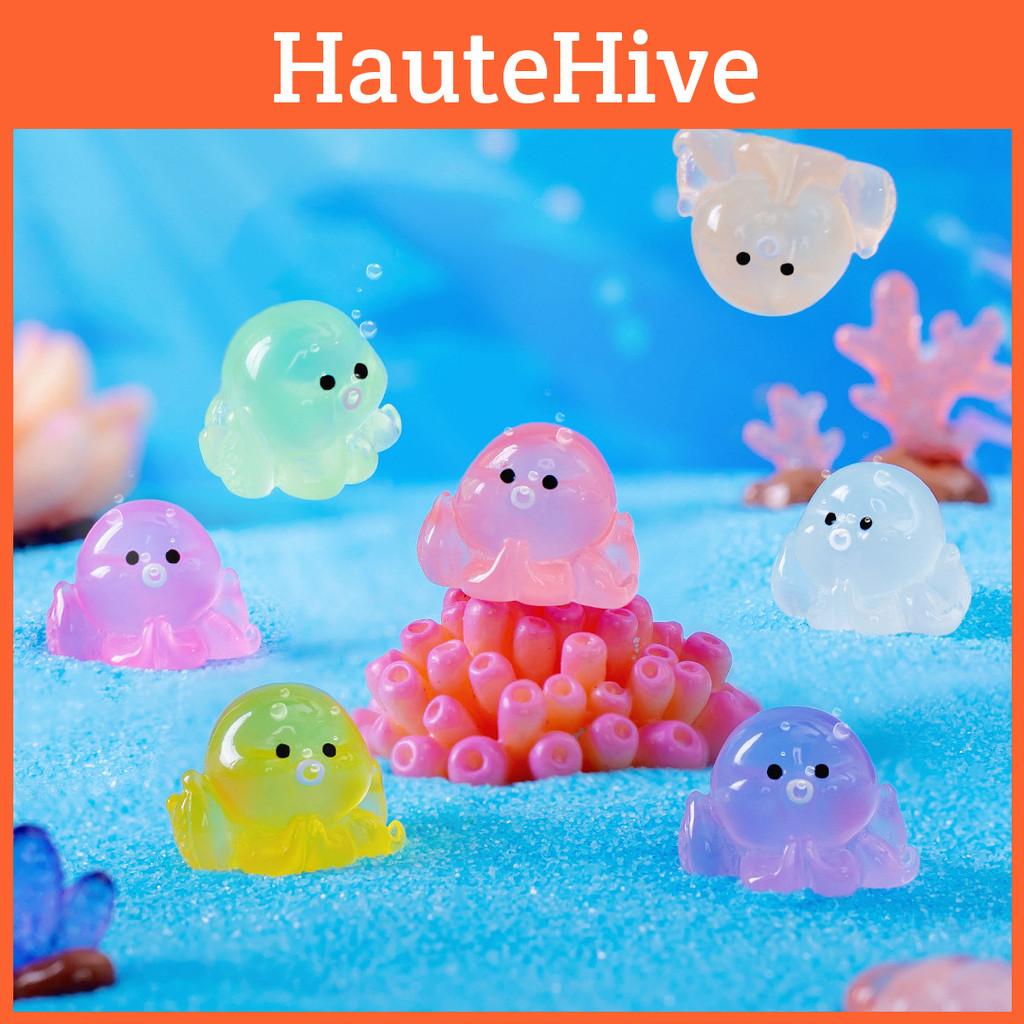 Красочное светящееся мини-украшение в виде осьминога из смолы для аквариума и террариумов