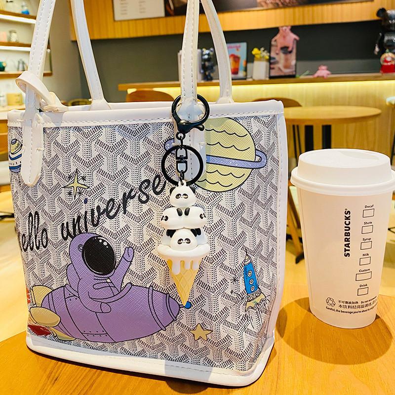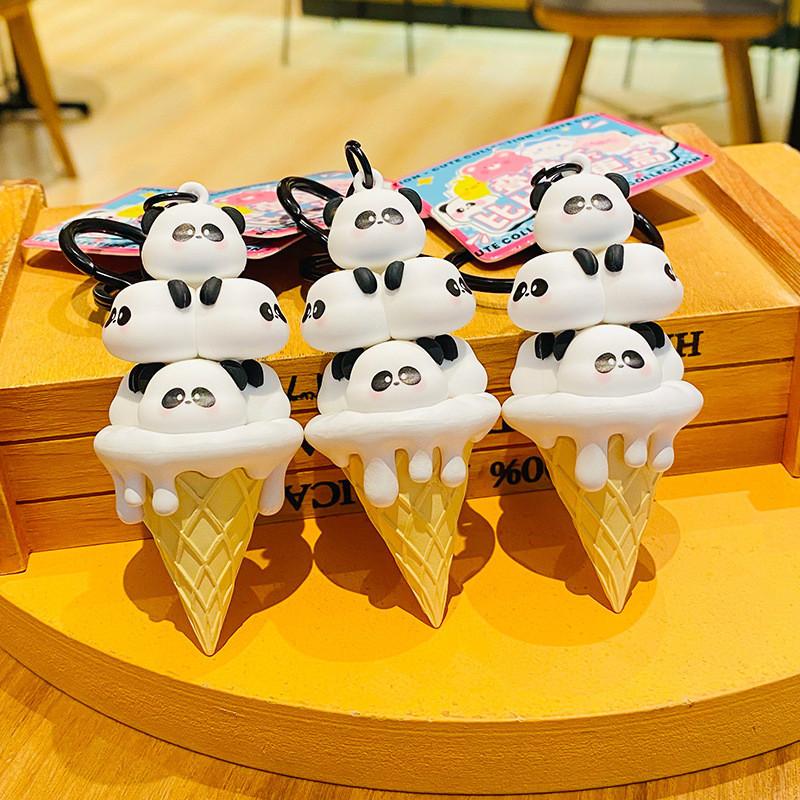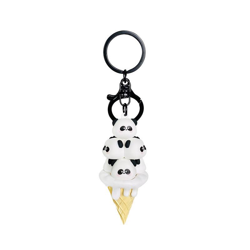Adorable Cartoon Panda Keychain With Cute Ice Cream Stack Design Pvc Material