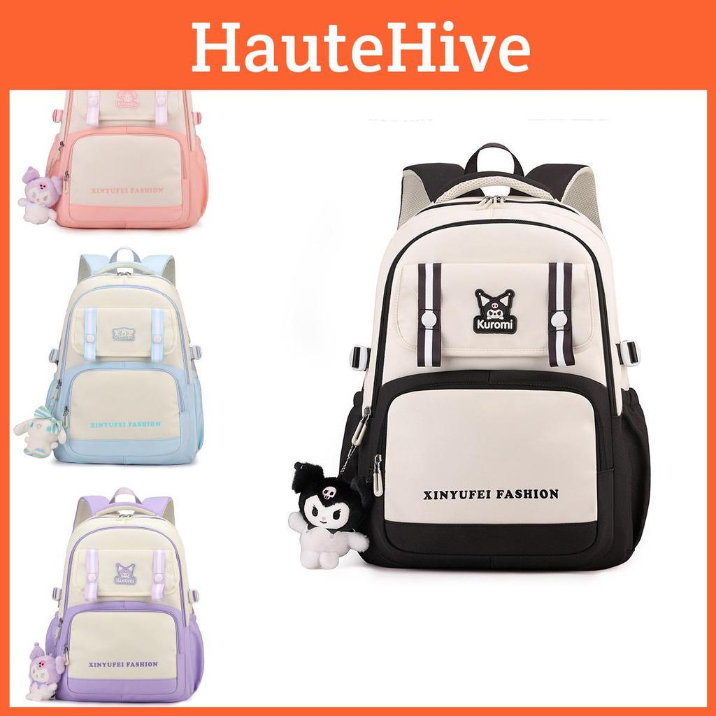 In terms of style, this backpack doesn't compromise. Featuring a delightful anime cartoon pattern, it adds a touch of fun and whimsy to your everyday look. The backpack comes in four vibrant colors: purple, blue, pink, and black, catering to different tastes and preferences. Its playful yet chic design makes it a versatile accessory that complements various outfits, making it suitable for any occasion, be it school or a casual outing.