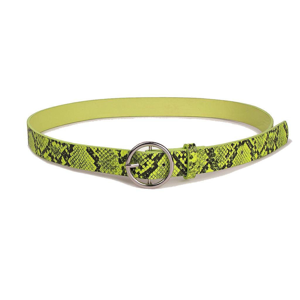 Этот женский ремень имеет яркий флуоресцентный зеленый змеиный принт, добавляющий смелый акцент весенним и летним нарядам.. Изготовлен из прочной искусственной кожи с пряжкой из металлического сплава, имеет длину 100 см и ширину 2,8 см, подходит для различных размеров талии.. Идеально для повседневной или модной дневной носки, легко регулируется с помощью пряжки-штифта.. Протирайте влажной тканью для поддержания яркого внешнего вида.