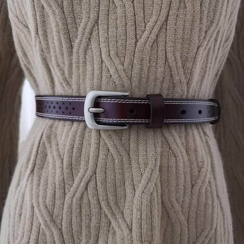 Этот женский ремень изготовлен из натуральной коровьей кожи с двухслойной конструкцией, что обеспечивает долговечность и изысканный вид.. Сплавная пряжка с застежкой-штифтом обеспечивает надежную посадку, а ширина ремня составляет 2-4 см, а длина - до 115 см.. Подходит для офисной одежды или уличной моды, дополняет различные наряды. Для ухода протирайте влажной тканью.