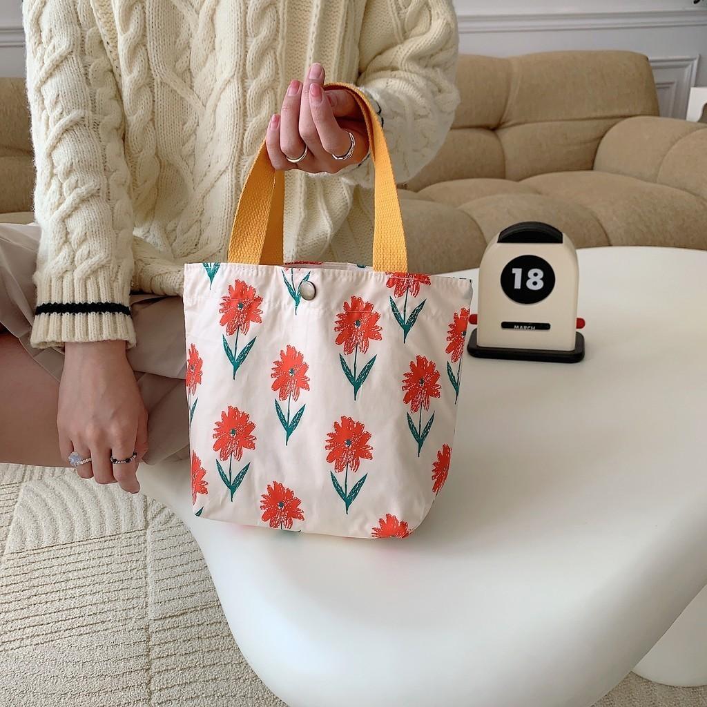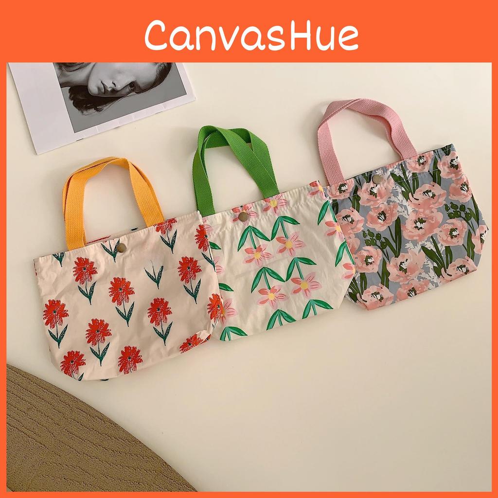 Trendy Street Style Floral Cotton Bento Bag Cute Canvas Lunch Tote For Women