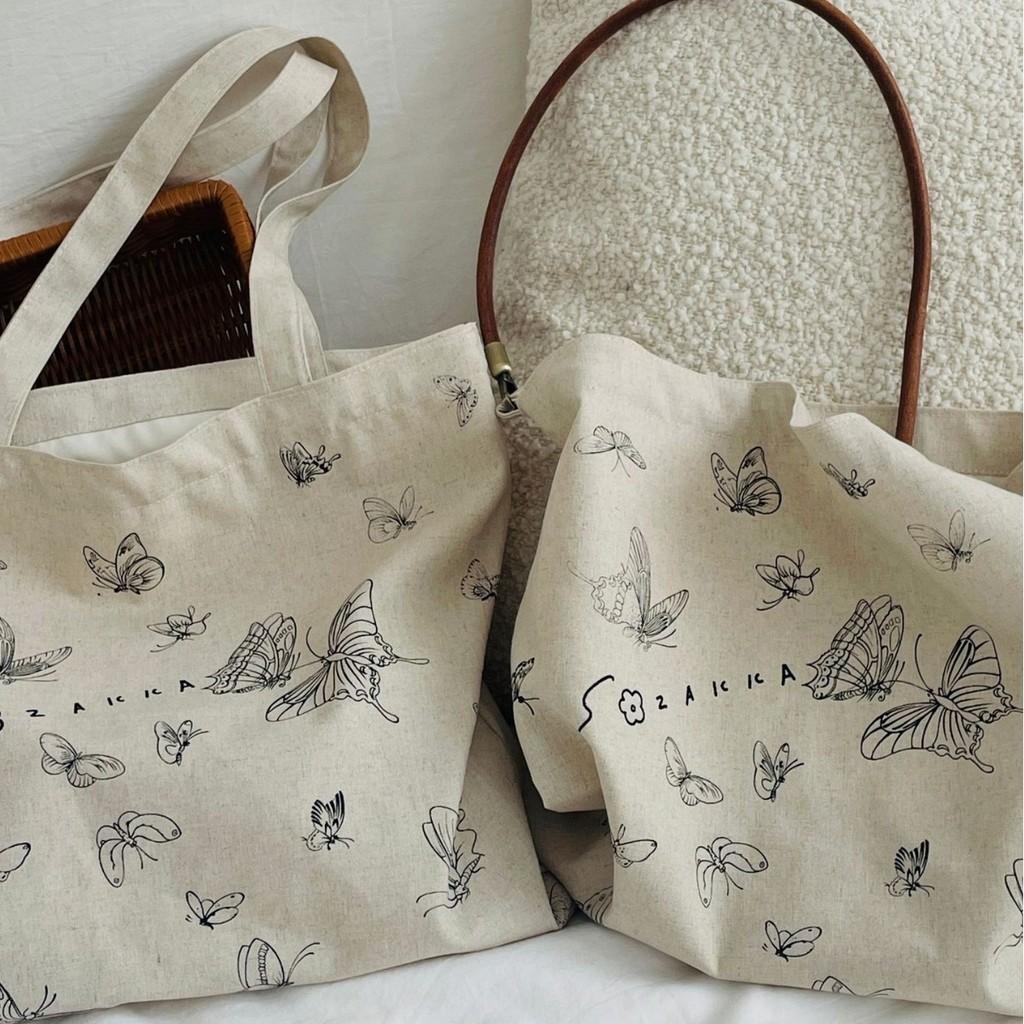 Модная тканевая сумка-тоут с принтом бабочки для женщин, уличная мода, средний размер