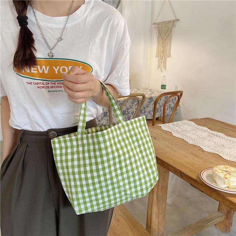 Очаровательная свежая портативная сумка для бенто в японском стиле, клетчатая сумочка для мам и студентов