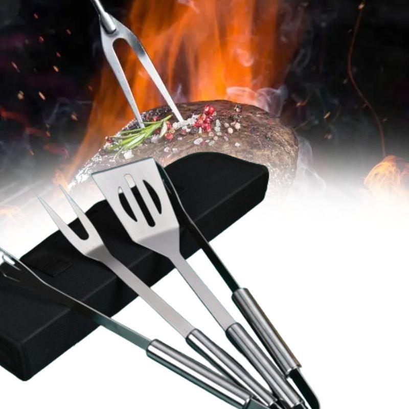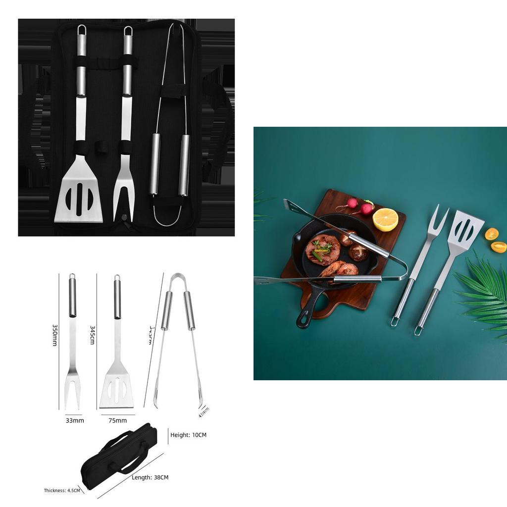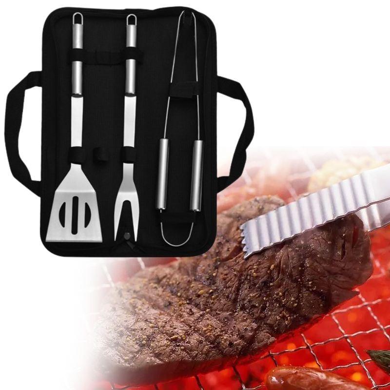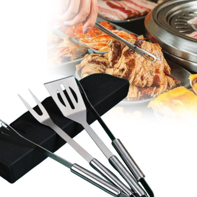 Современный минималистичный набор из 3 предметов из нержавеющей стали для гриля, идеально подходящий для барбекю, стейков и корейского барбекю.