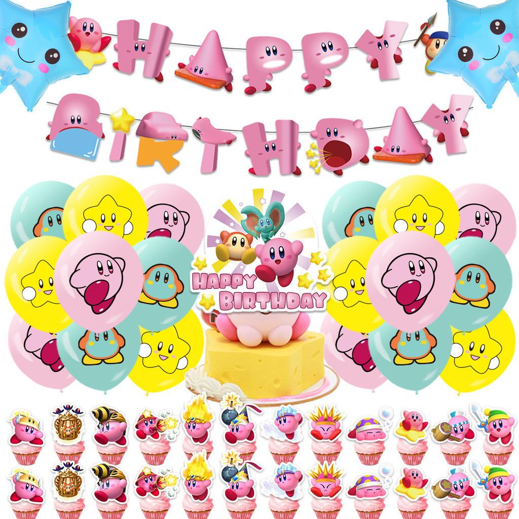 Набор подвесных флагов для украшения на день рождения в стиле Кирби с вставкой для торта из игры, воздушные шары из алюминиевой фольги, набор вымпелов