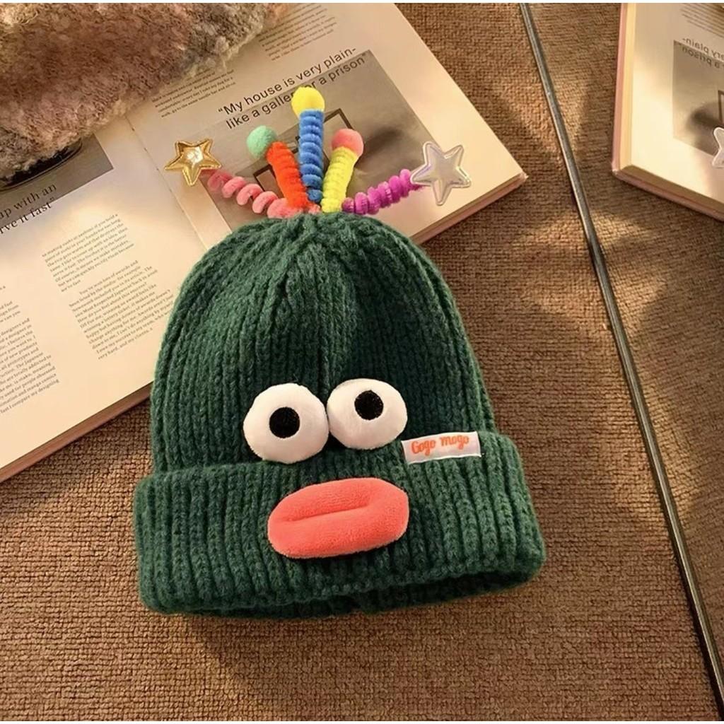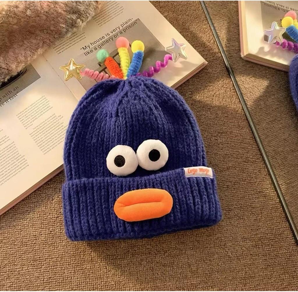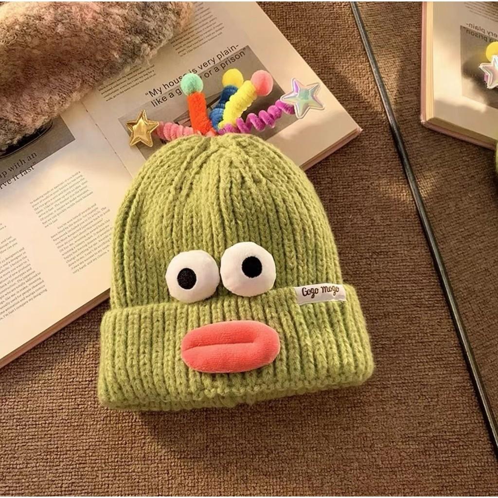 Милая смешная вязаная шапка-лягушка женская осенне-зимняя широкая повязка на голову теплая шапка 2023 новая шапка от холода студенческая
