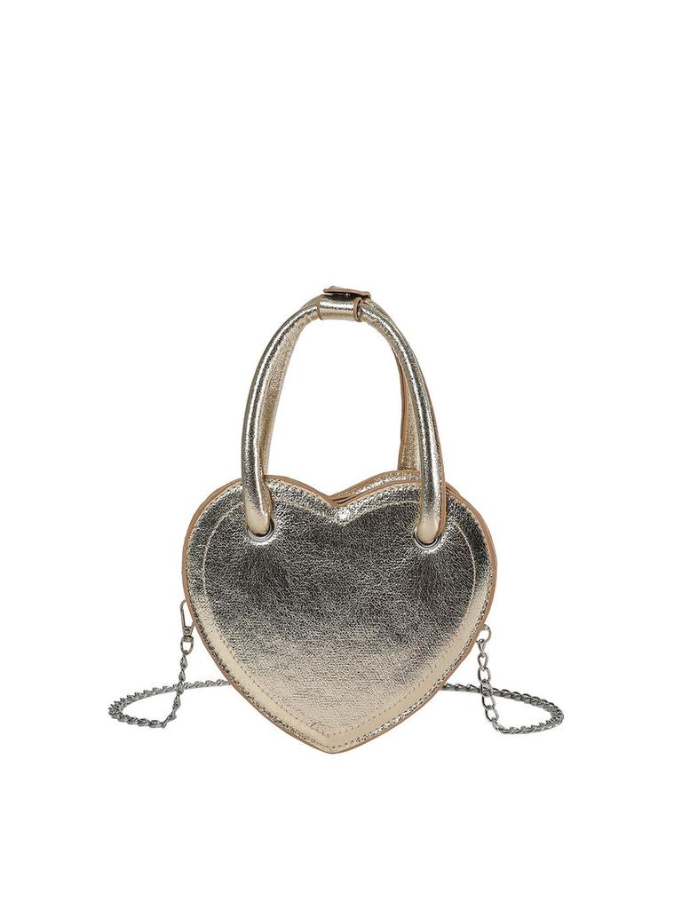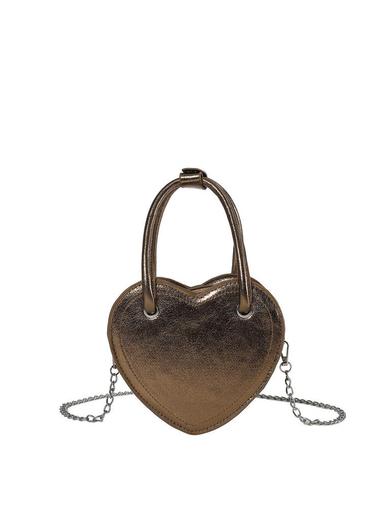 Street Chic Pu Small Square Bag Trendy Heart-shaped Zipper Closure Shoulder Bag Silver
