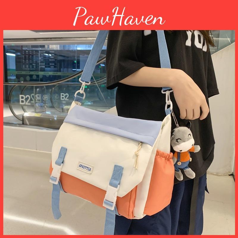 Made from durable canvas material, this crossbody bag is not only trendy but also practical, with a large capacity to hold your essentials.Available in four chic colors - gray, black, blue, and orange.