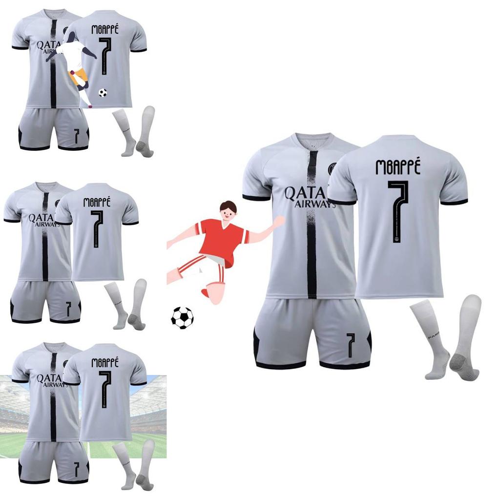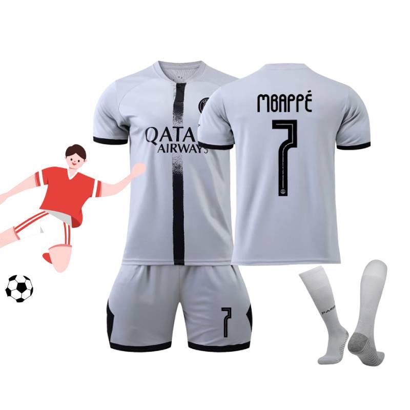 2023 Париж Выездная Серая Футбольная Форма Месси Мбаппе Неймар Полиэфирное Волокно Размеры 16-28 Xs-2xl