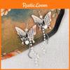 The unique design of these earrings sets them apart from the rest. With a dangling tassel that gently sways with your every move, these earrings exude a sense of grace and poise. The intricate detailing of the butterfly in the center adds a touch of whimsy and adds a playful element to your overall look.