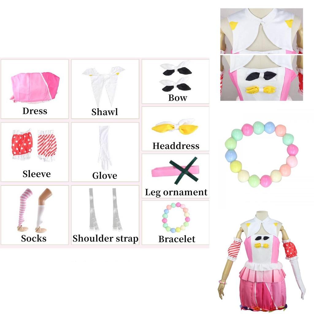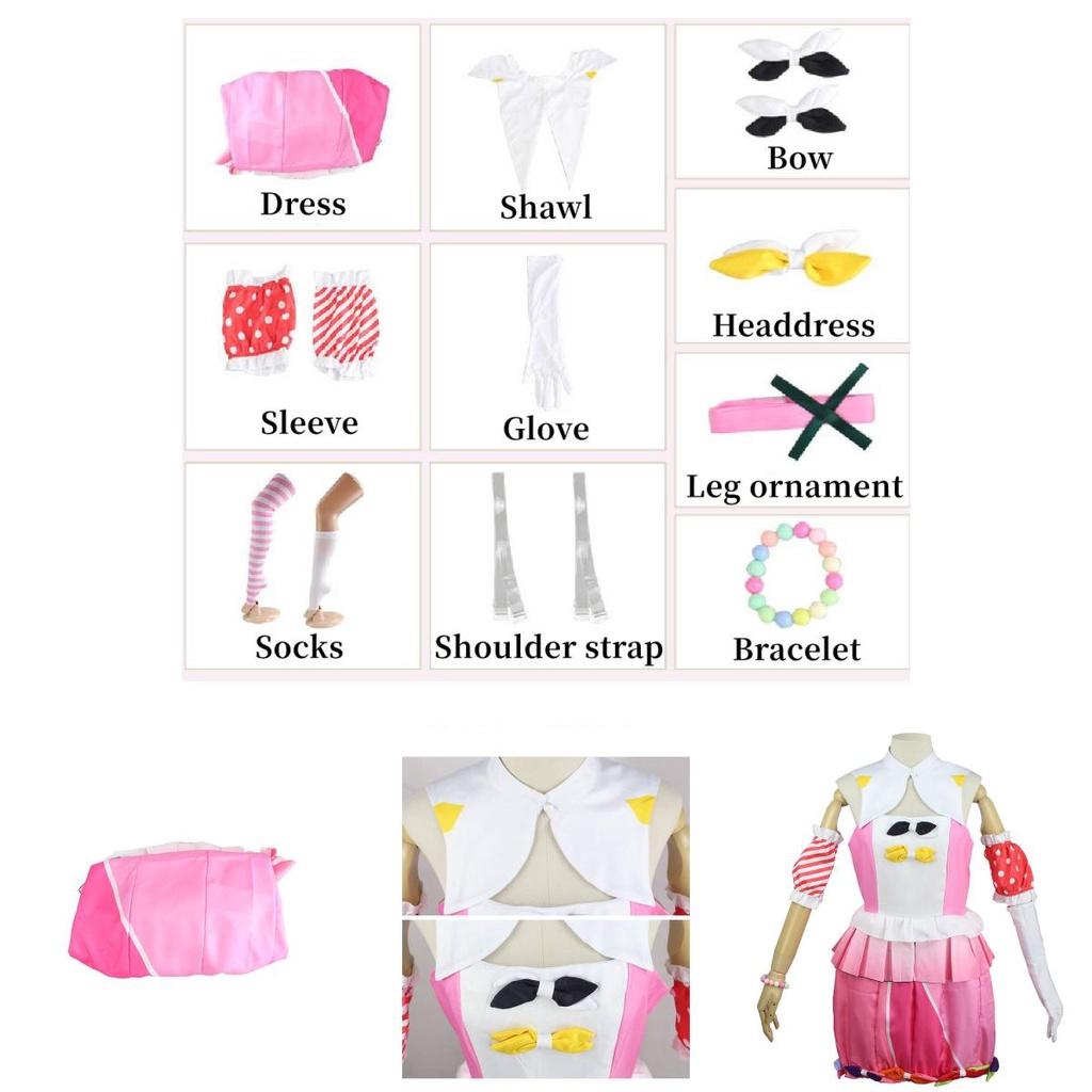 1xОтори Эму Косплей(Платье + рукав для рук + носки + шаль + перчатки + плечевой ремень + узел банта + головной убор + орнамент для ног + браслет)