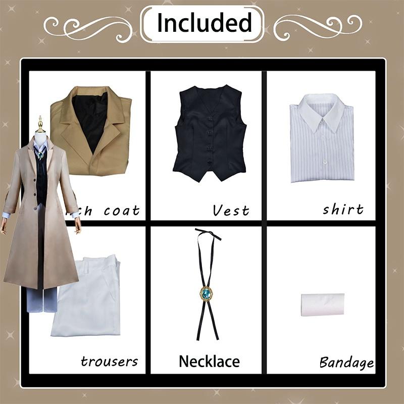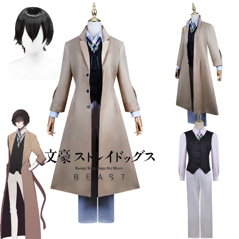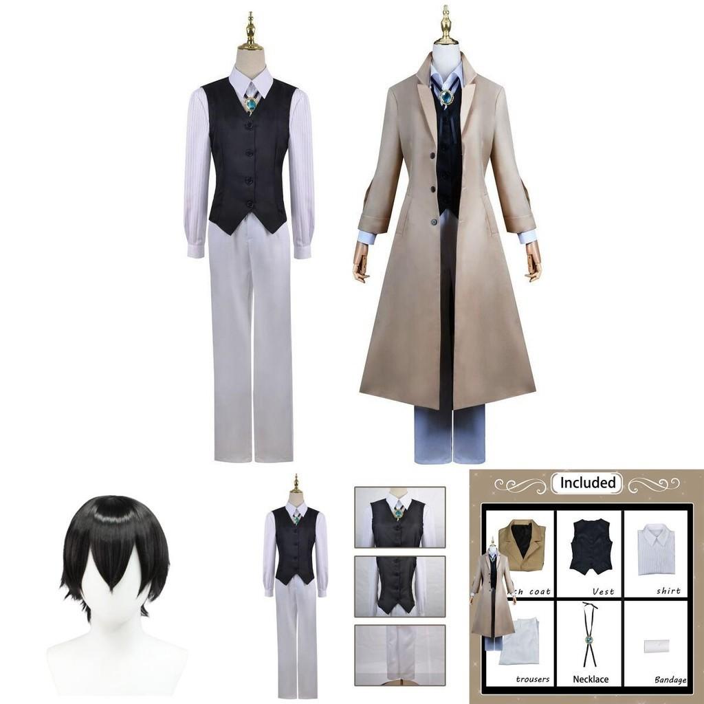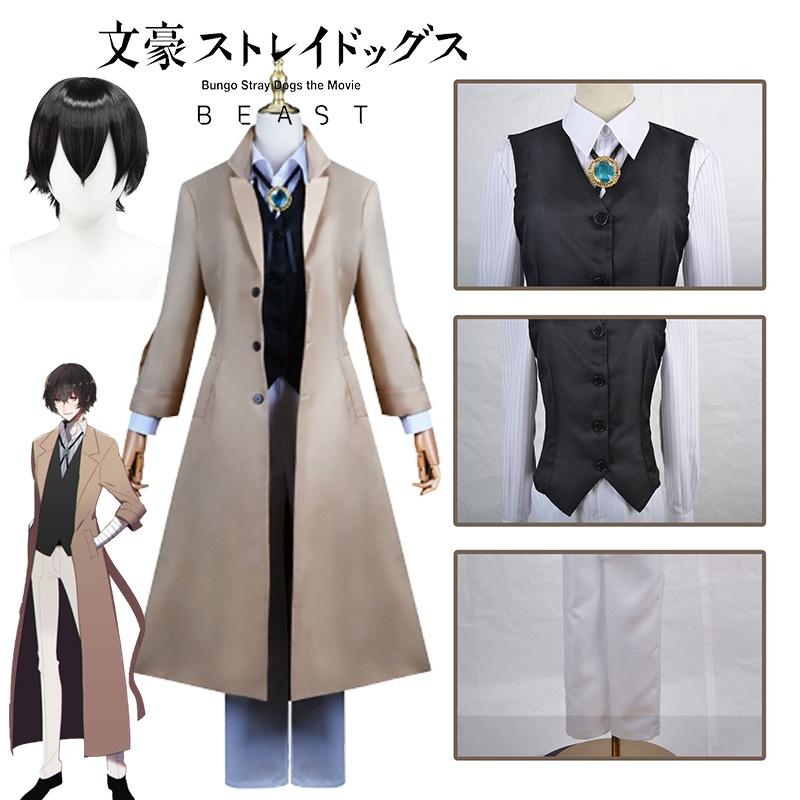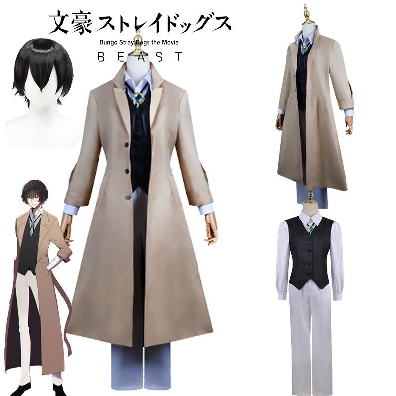 Изысканный костюм для косплея Дазая Осаму, парик, тренч, Бродячие псы Литературы, Хэллоуин, Карнавал