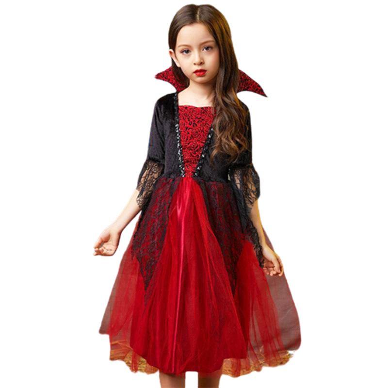 Дети Хэллоуин Злой вампир Косплей Костюм Красный тюль Юбка Фантазия Платье Вечеринка