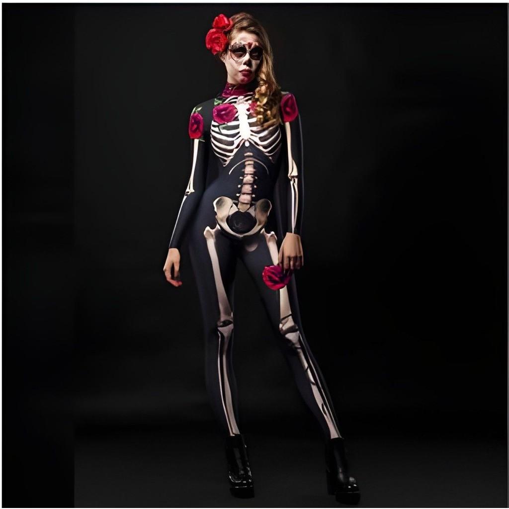 Дышащая ткань Женский костюм скелета на Хэллоуин для удобной посадки
