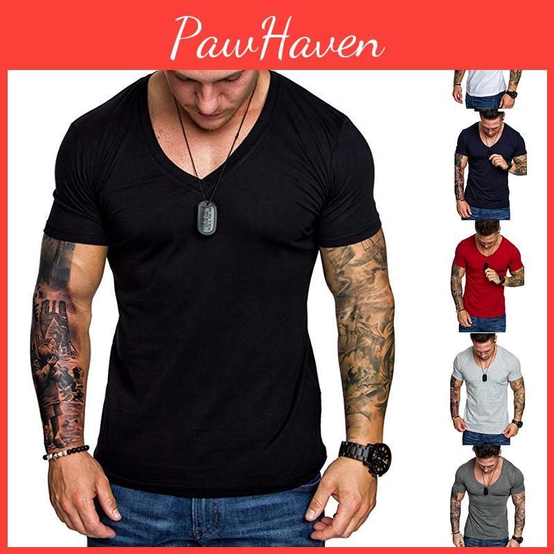 Мода Мужская Тонкая V-образная шея Короткий рукав Мышца Футболка Футболка Повседневная посадка Топы Блузка