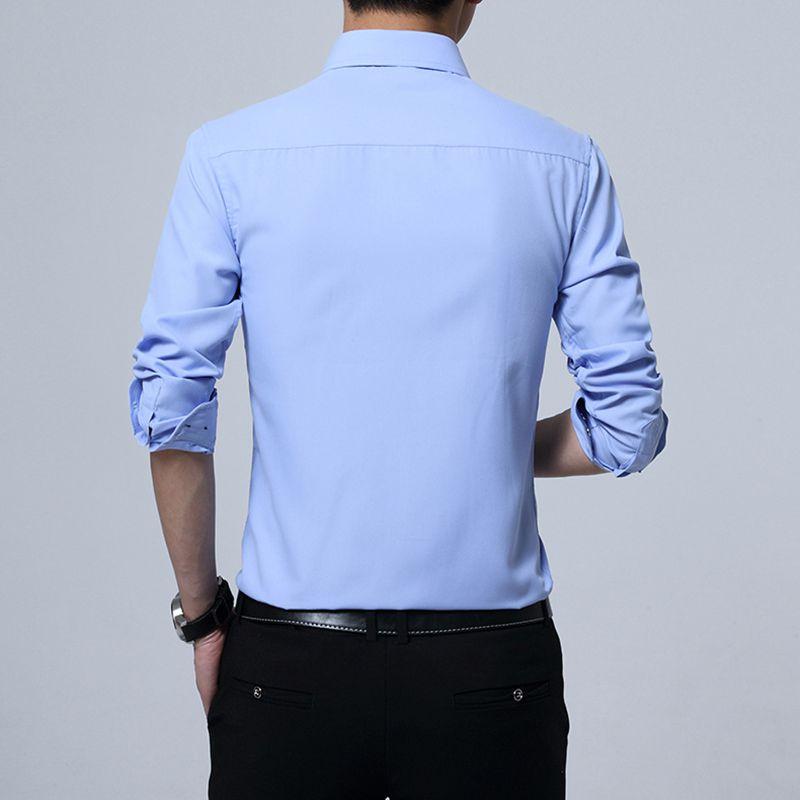 Новые мужские повседневные рубашки с длинным рукавом, облегающие однотонные рубашки из хлопка, рубашки для платья, топы