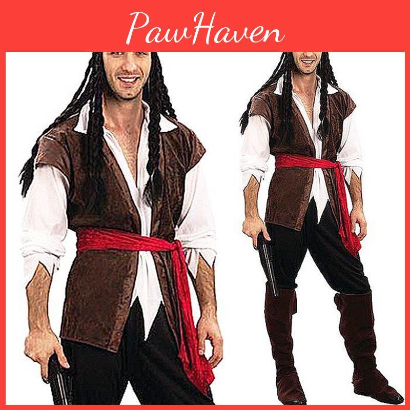 Классический взрослый костюм карибского пирата для мужчины, идеально подходящий для косплея на Хэллоуин