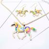 Уникальный дизайн отличается очаровательным животным мотивом - восхитительным пони, который воплощает игривость и радость.. Подвеска размером 6 x 4,2 см и серьги размером 3 x 3,5 см, с их яркими цветами и замысловатыми деталями, создают привлекательный градиентный эффект, который обязательно привлечет внимание.
