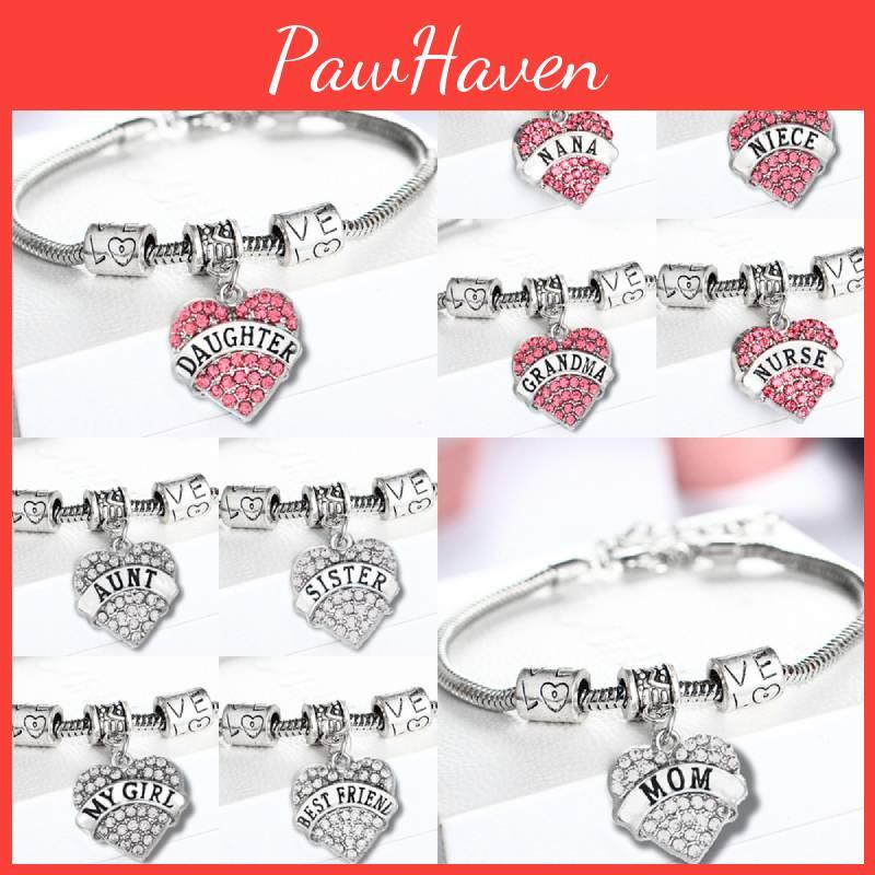Стильный браслет для члена семьи в форме сердца с акцентами из стразов для особых случаев