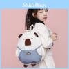 This unisex cartoon capybara backpack features a playful design made from durable oxford cloth and polyester lining, measuring approximately 30*15*43 cm . Its ergonomic curved shoulder straps support comfortable wear, making it suitable for middle school students. Ideal for school and daycare use, it helps reduce load stress during daily activities. Wipe clean with a damp cloth for maintenance.