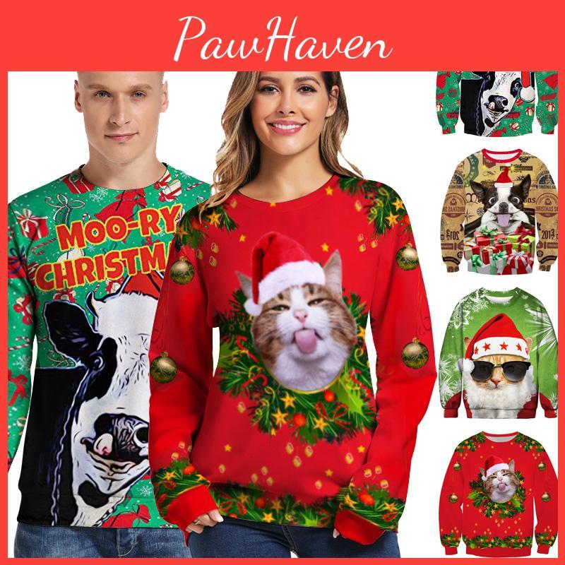 Роскошно мягкий женский рождественский свитер Санта Клаус Кот Собака Рождественский джемпер Топ