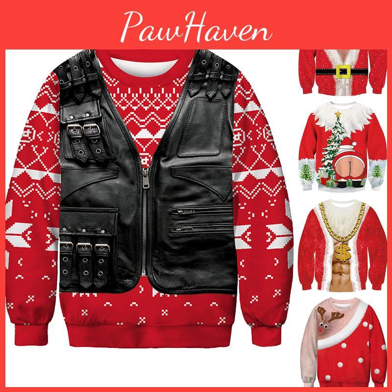 Уютный и праздничный 3D свитер с уродливым рождественским принтом, с круглым вырезом, для женщин и мужчин — купить товар онлайн с бесплатной доставкой по всему миру!