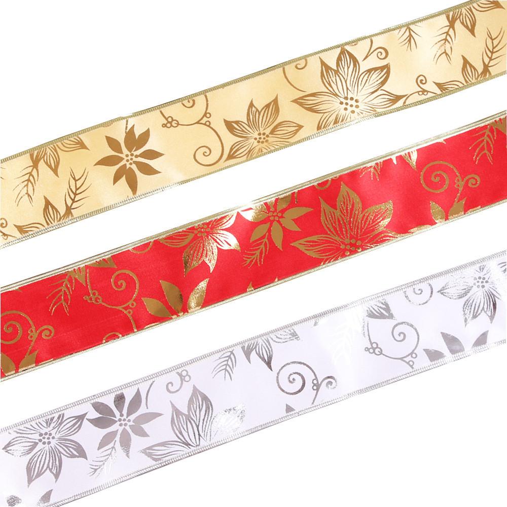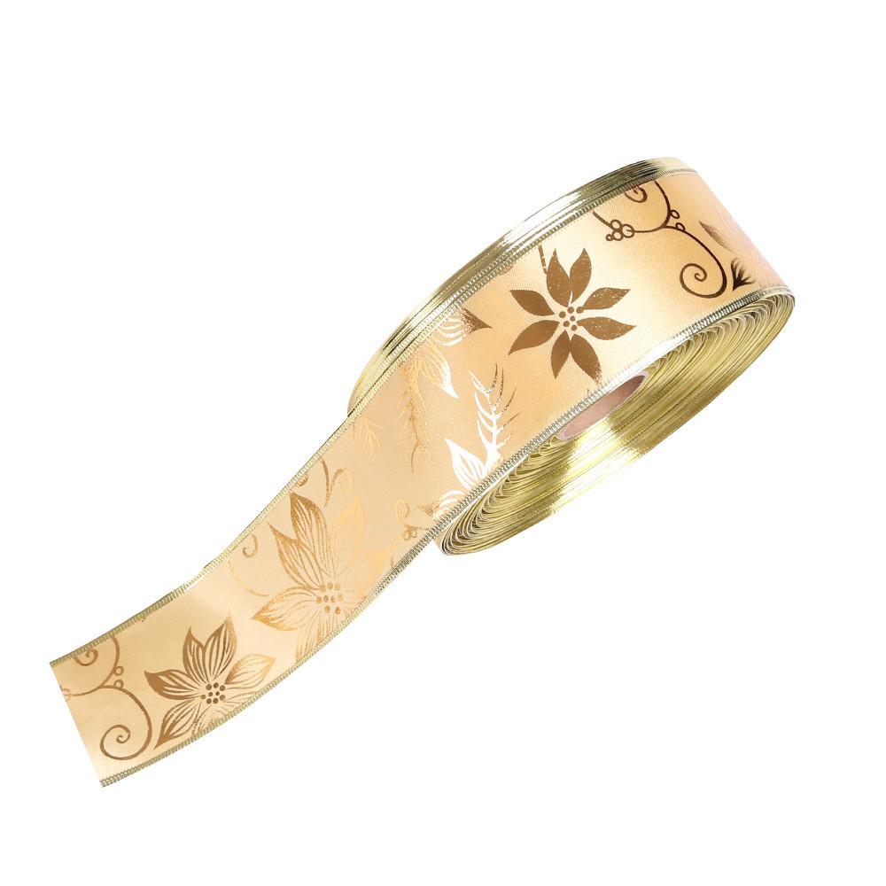 Изысканная 2-метровая лента для рождественской елки, украшенная цветочным дизайном с золотыми пионами