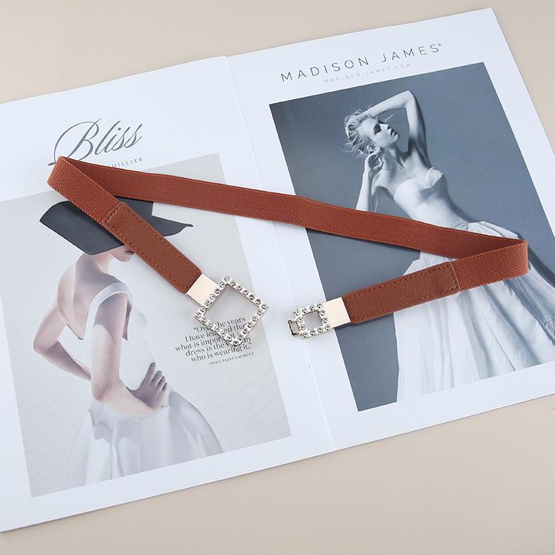 Пояс из искусственной кожи стрейч с пряжкой, украшенной драгоценными камнями, для дам