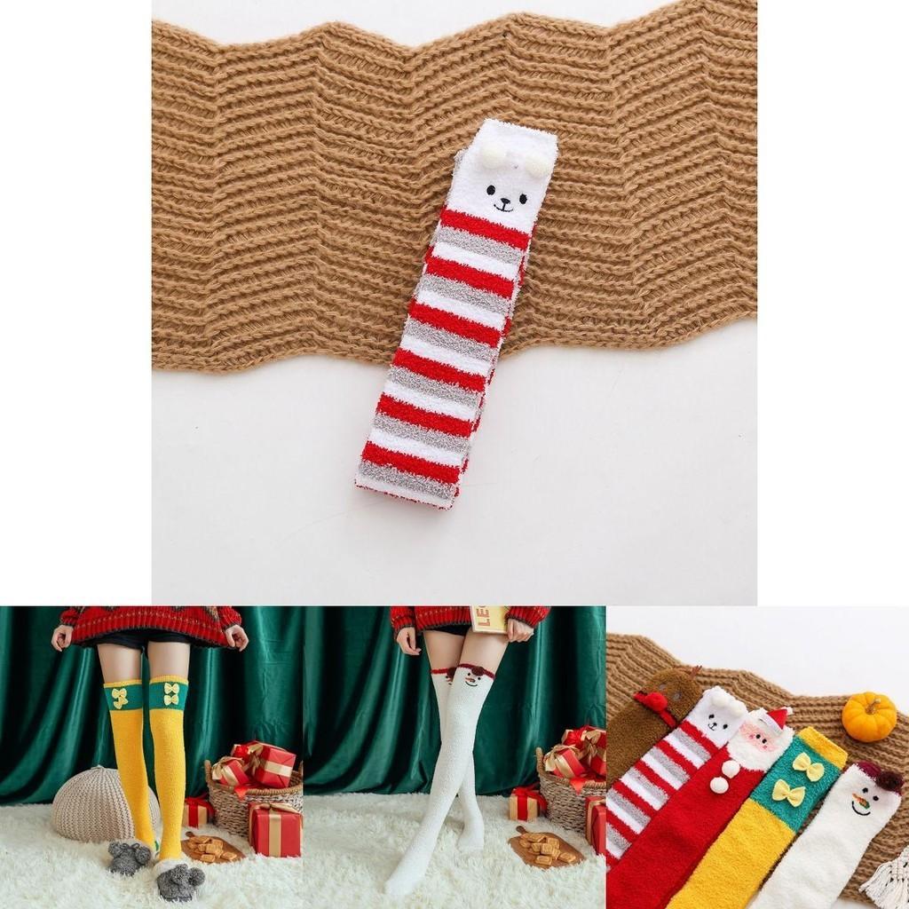 Женские носки из кораллового флиса на Рождество, теплые чулки до бедра выше колена, Санта Клаус, лось, эльф
