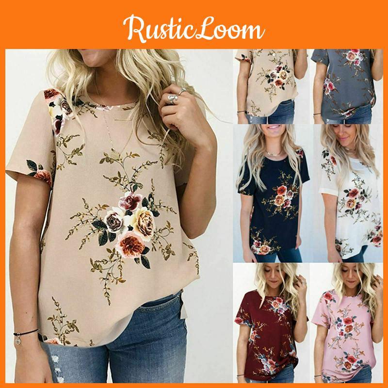 Elegant Summer Women Blouse Floral Print Short Sleeve Loose Casual T-shirt Tops