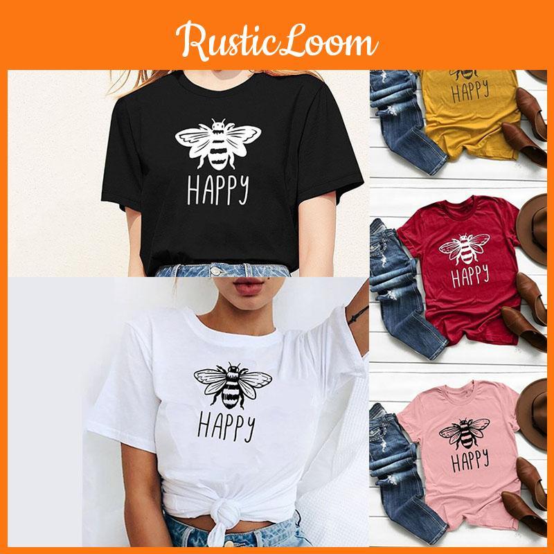 2. This short sleeve tee with funny bee happy letter print is a good choice for your daily wear, cute and funny.