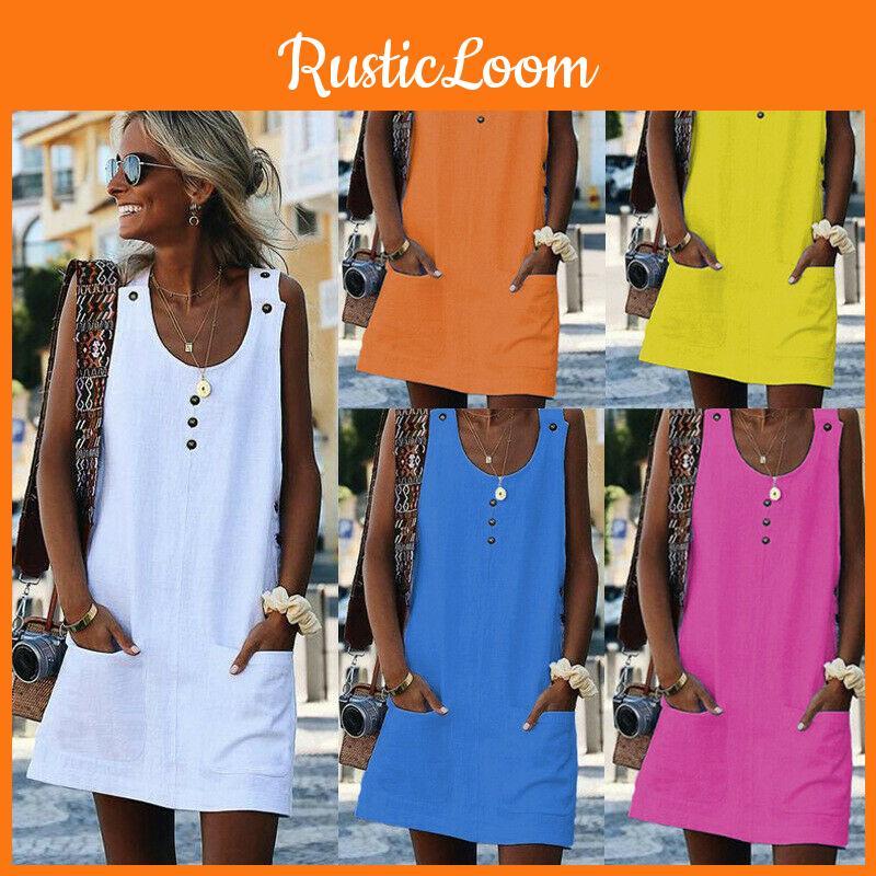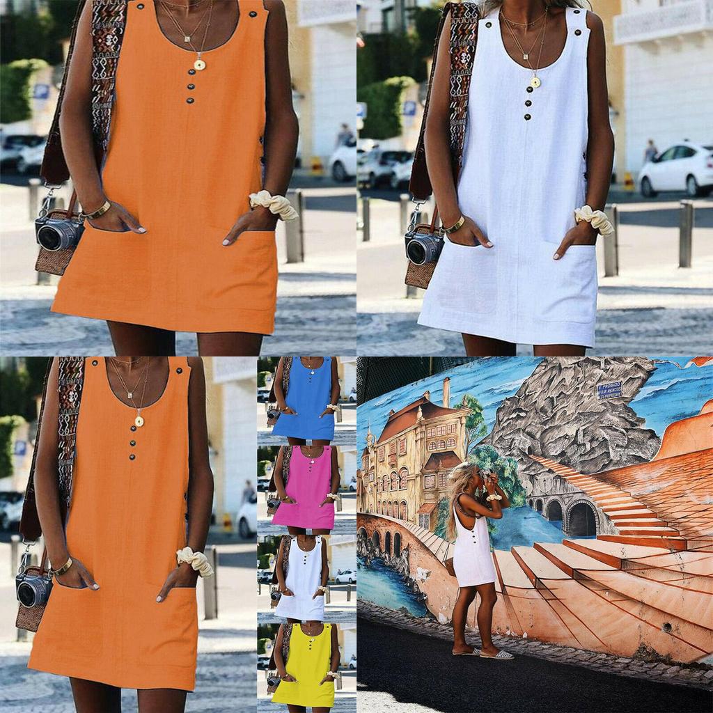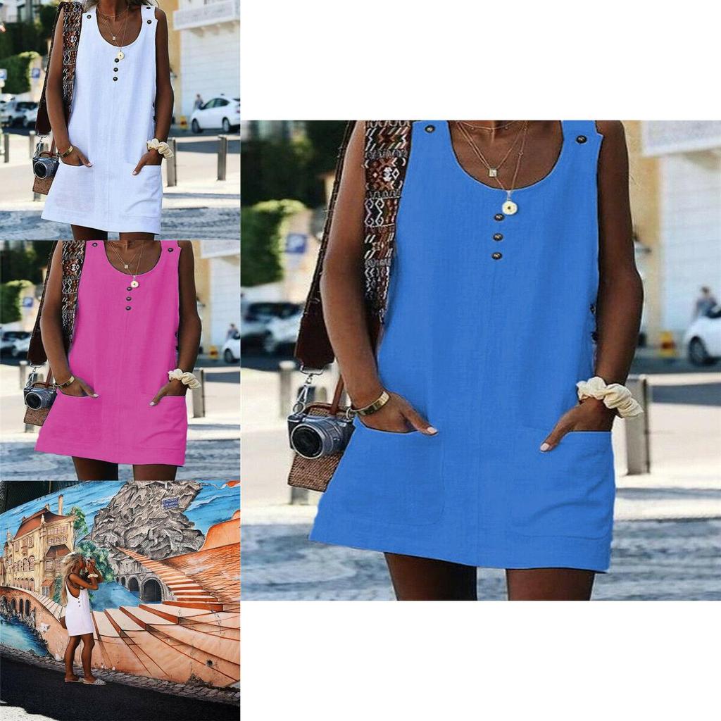 Красиво сшитое женское платье без рукавов с удобным карманом