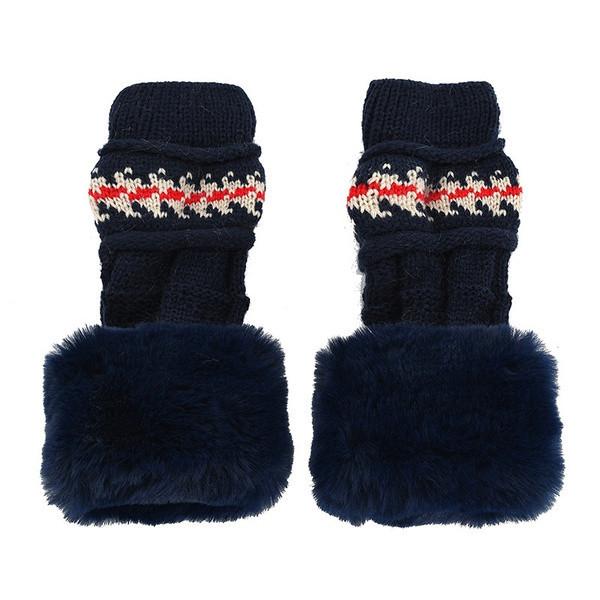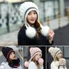 Элегантный Модный Зимний Набор Шапка и Перчатки для Женщин с Теплой Вязаной Шапкой-Бини и Помпонами