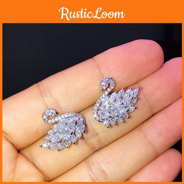 Beautifully Crafted Swan Shape Stud Earrings With Zircon Ideal For Ball Lovers Gifts