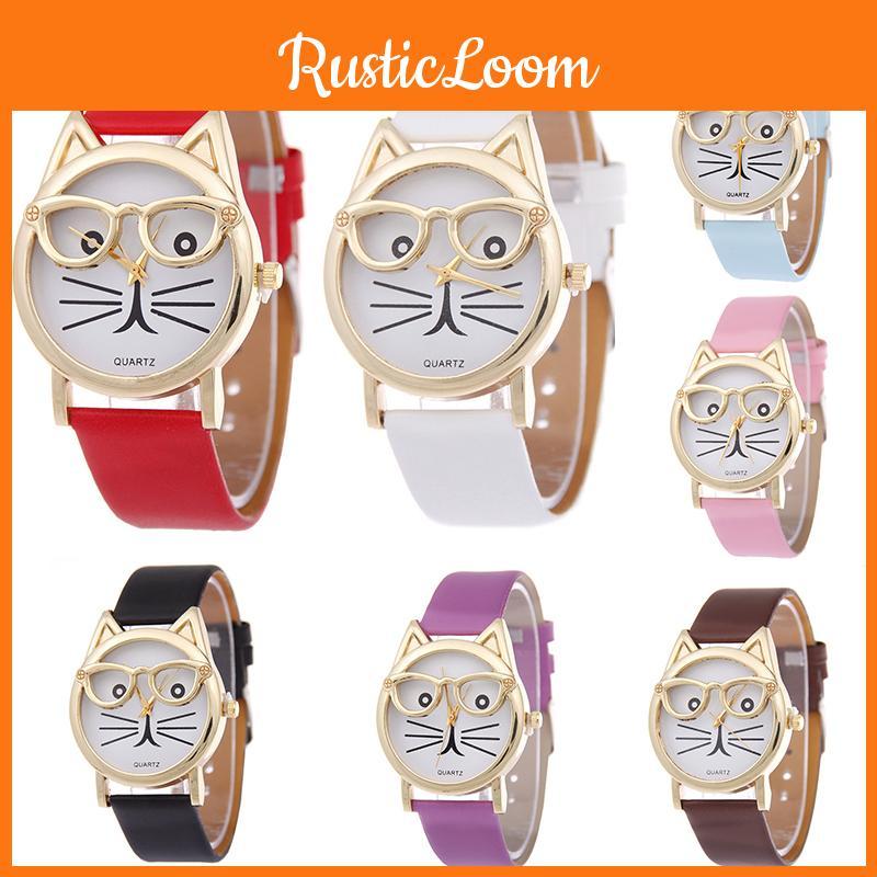 Эти модные часы украшены изображением кота в очках на циферблате и предлагаются в различных очаровательных цветах на выбор, включая белый, коричневый, красный, фиолетовый, черный, розовый и синий, подходящие для разных личностей и предпочтений.