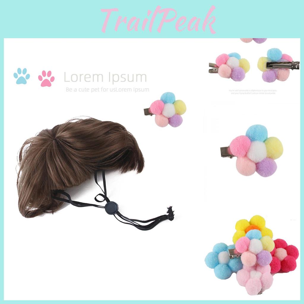 Очаровательные аксессуары для парика питомца, включая коричневый парик-боб и яркие цветочные заколки для собак и кошек