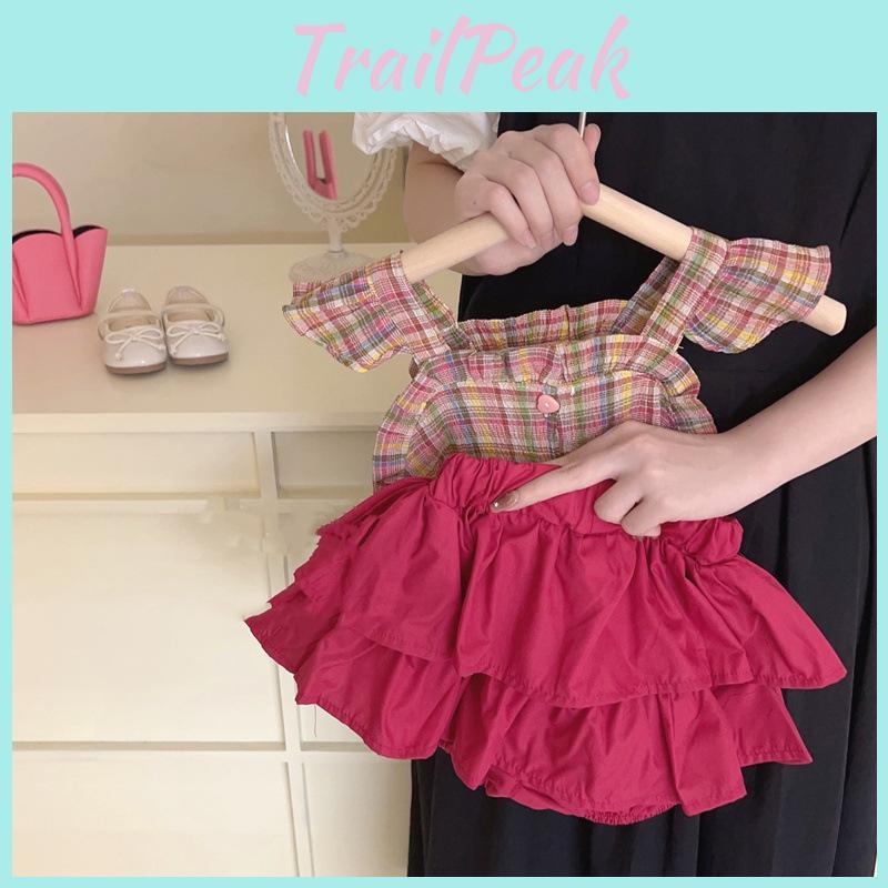 Стильный корейский дизайн: Этот очаровательный наряд для девочек выполнен в модную клетку и идеально подходит для стильной летней носки.