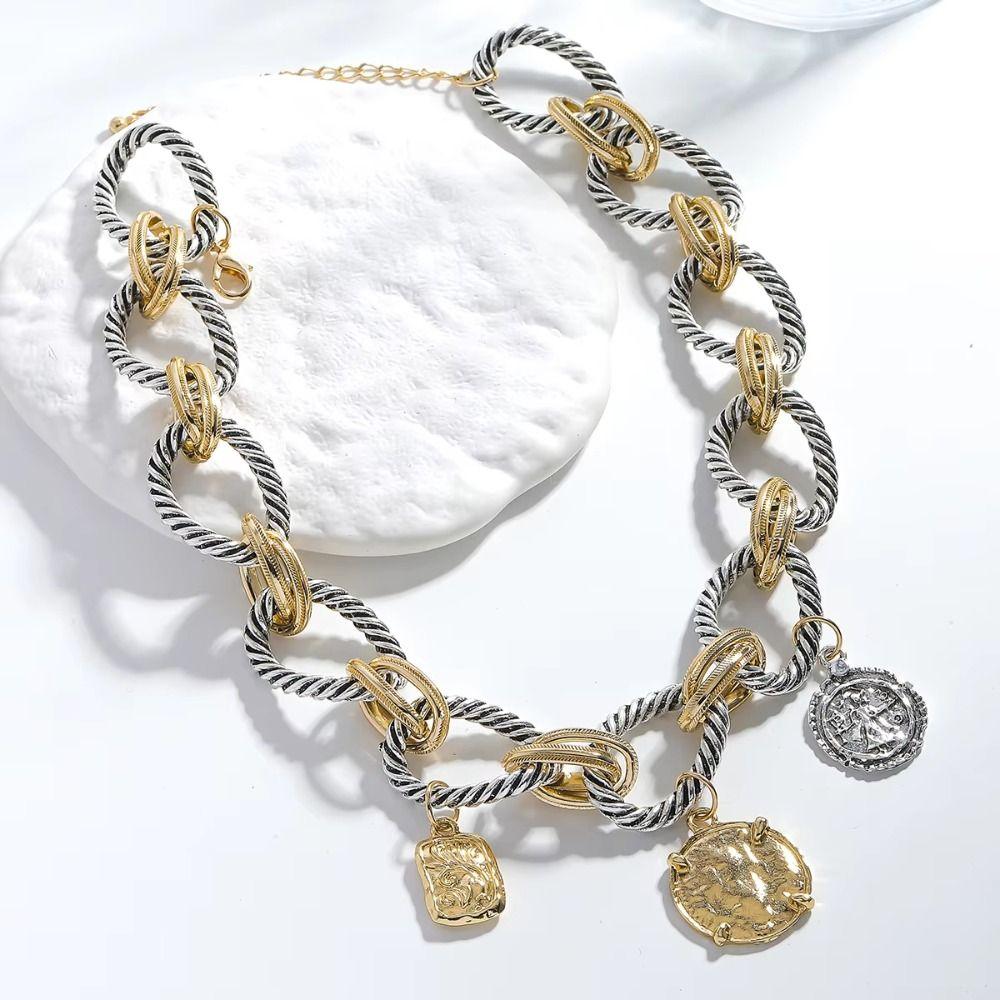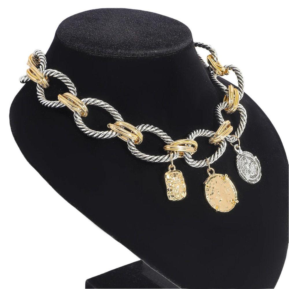 Fashion Geometric Pendant Double Color Circular Choker Charm Neck Jewelry Women