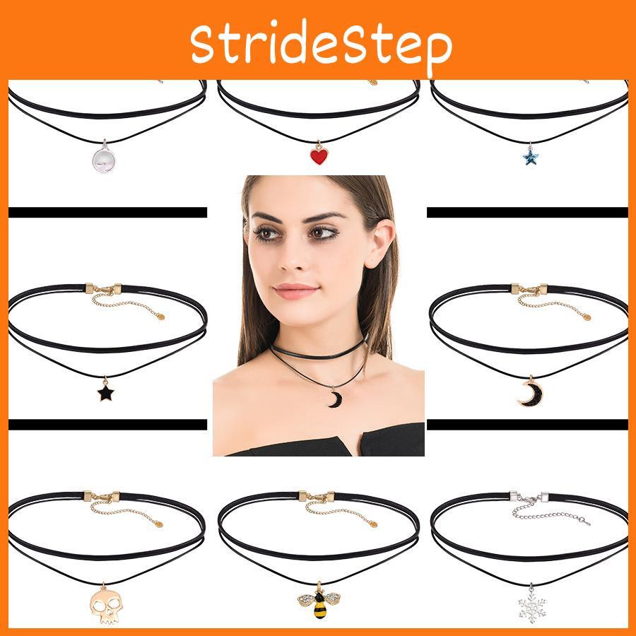 Модное многослойное ожерелье-чокер из ПУ для женщин с эффектными двойными подвесками в виде сердца и звезды