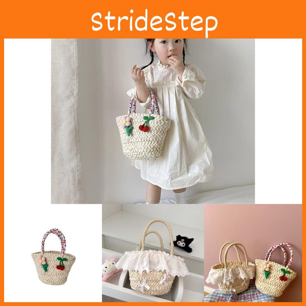 Stylish Unisex Kids Woven Bucket Bag In White Lace With Playful Cherry Print